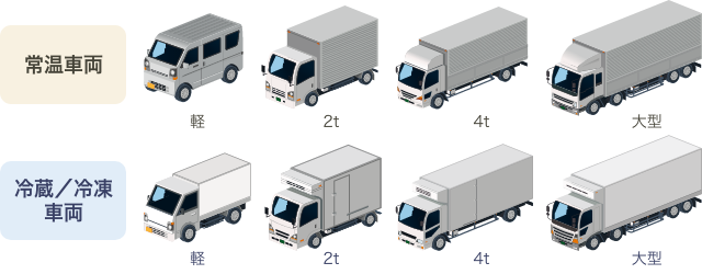 軽車両から一般大型車両(2t~大型)まで荷物に応じて選択できます。