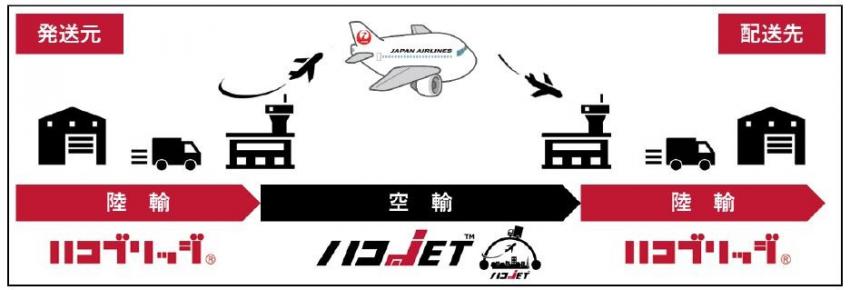 日本航空株式会社(本社:東京都品川区、代表取締役社長:赤坂 祐二、以下「JAL」)と株式会社ルーフィ(本社:東京都中央区、代表取締役社長:渡辺 泰章、以下「ルーフィ」)は、2020年12月1日より、国内主要7空港と全国の陸路をつなぐ、空陸一貫の新配送サービスの提供を共同で開始します。新配送サービスは、ルーフィが運営するビジネス便に特化した配送のマッチングシステム「ハコブリッジ」の一機能「ハコJET」として提供します。
