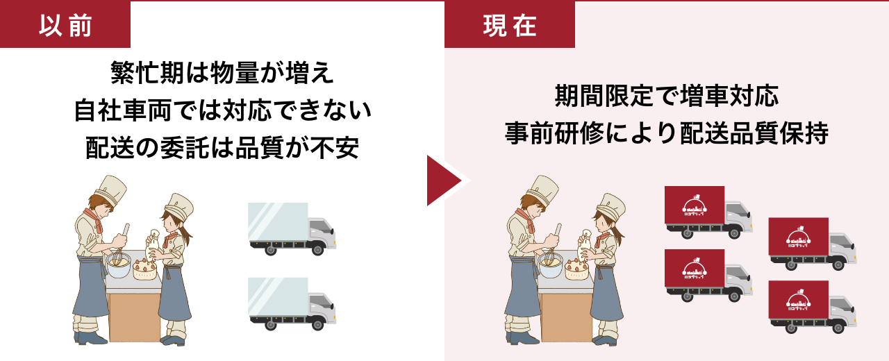 - 現在は配送経験の長い正社員が対応しているが、委託には配送品質の不安がある